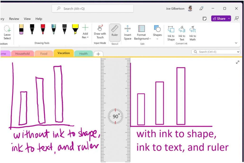 اگر از طرفداران استفاده از OneNote برای یادداشت‌برداری با جوهر دیجیتال هستید، آخرین نسخه شامل برگه‌ی ترسیم به‌روزشده‌ای با ابزارهایی شبیه به Word و Excel و PowerPoint است. ویژگی‌هایی مانند Ink to shape و Ruler و Ink to text همگی در این برگه‌ی به‌روز‌شده وجود دارند. OneNote همچنین از Surface Slim Pen 2 و سیگنال‌های لمسی آن که حسی شبیه به قلم روی کاغذ دارد، پشتیبانی می‌کند. ناگفته نماند مایکروسافت در حال برنامه‌ریزی برای اضافه‌کردن مجدد جوهر و نمای فوکوس قلم جدید است که OneNote را به PenFirstRunExperience تبدیل می‌کند.