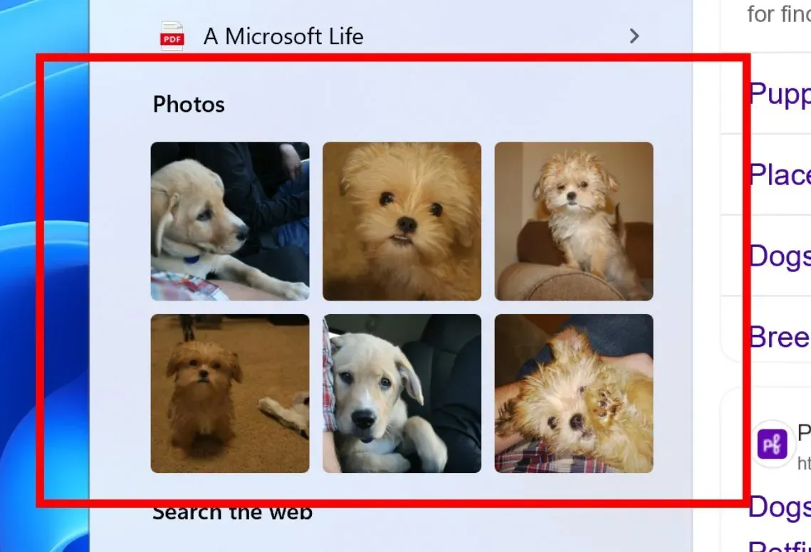حالا نتایج جستجوی عکس در نوار وظیفه بهصورت شبکهای (grid view) نمایش داده میشوند که مرور تصاویر را آسانتر میسازد. همچنین در صورت کامل نشدن فهرستبندی (indexing)، پیغامی مبنی بر محدود بودن نتایج ظاهر خواهد شد.