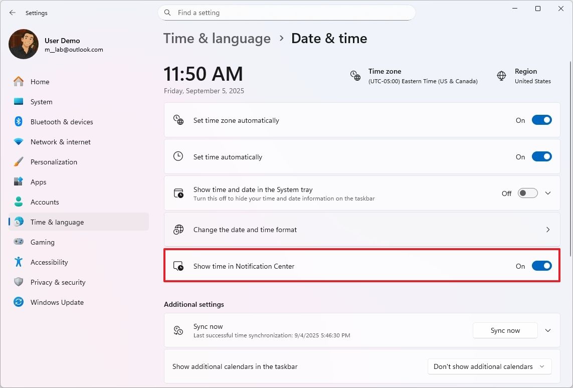 این قابلیت جدید بهصورت پیشفرض غیرفعال است و باید از مسیر Settings > Time & language > Date & time فعال شود. همچنین، ممکن است یک اعلان (toast) برای اطلاعرسانی نمایش داده شود.